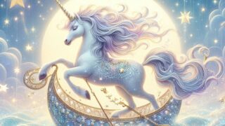 薄暗い夜にそっと星の光を灯すユニコーンの、静かで心温まる物語。