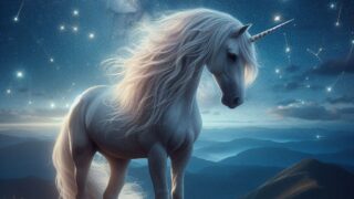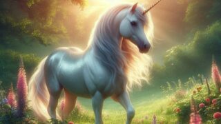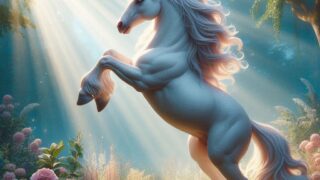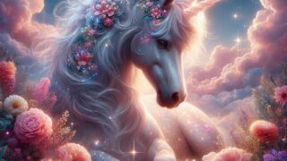 朝の光の中で祈りを捧げるユニコーン。静寂と希望が交わる癒しの物語。