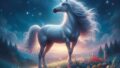 By the lake’s edge stood a unicorn, its horn glowing softly in the moonlight.