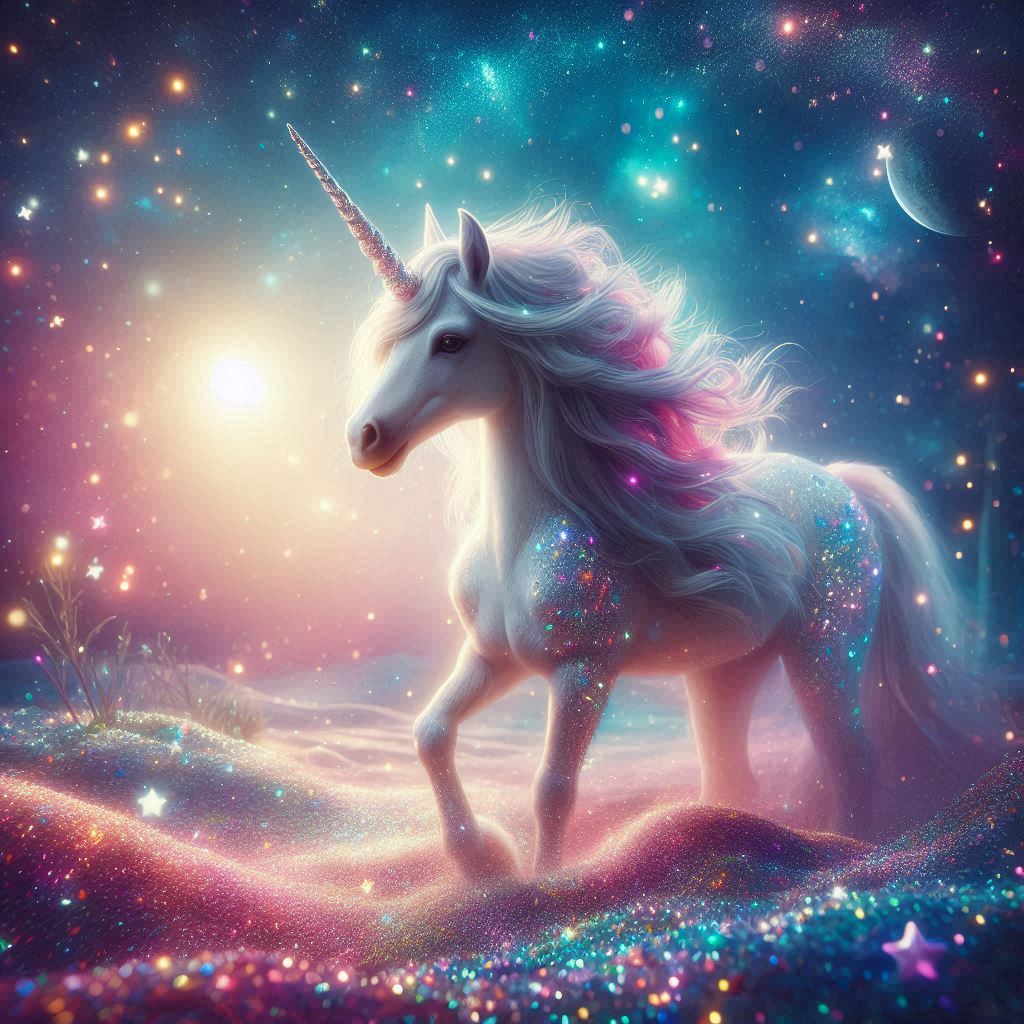 深い夜、ユニコーンはひとり、星屑の舞う空の下に立っていた。