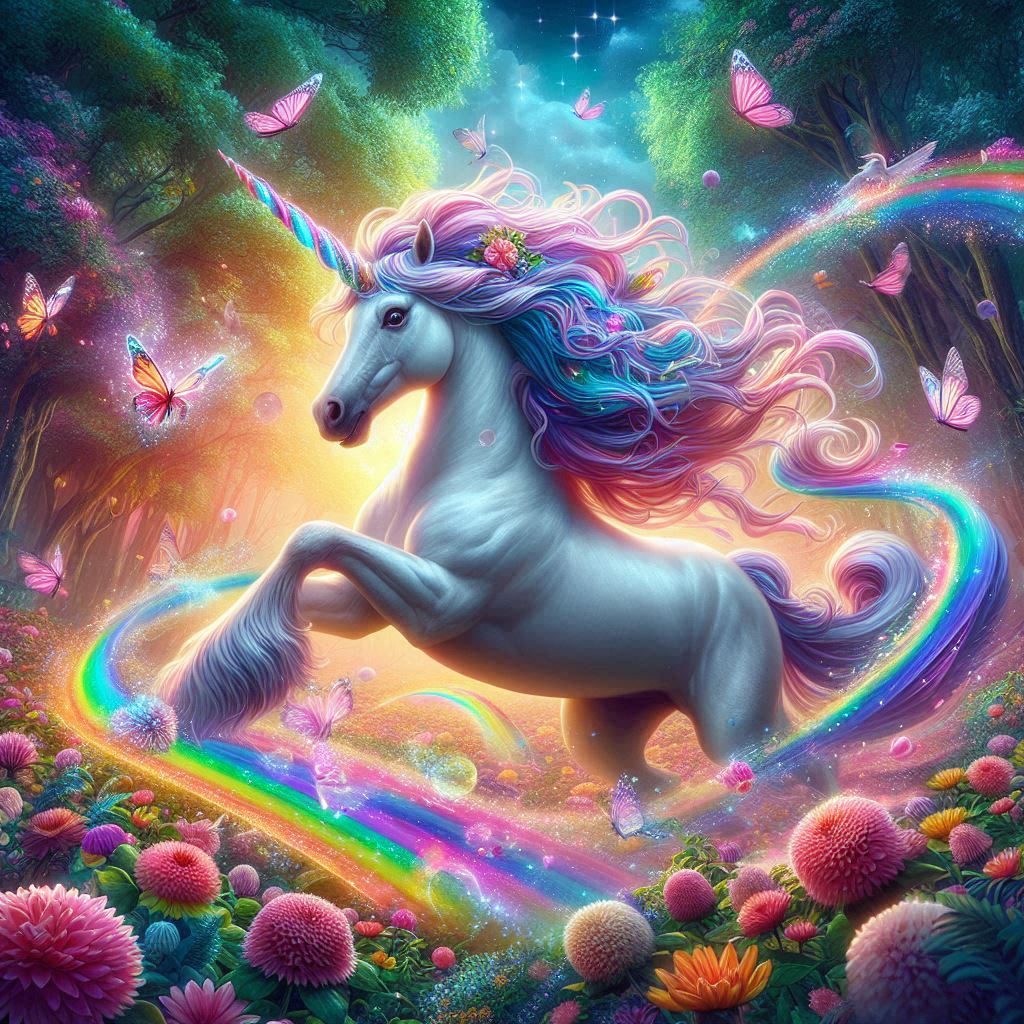 The unicorn gallops after it across the fields.