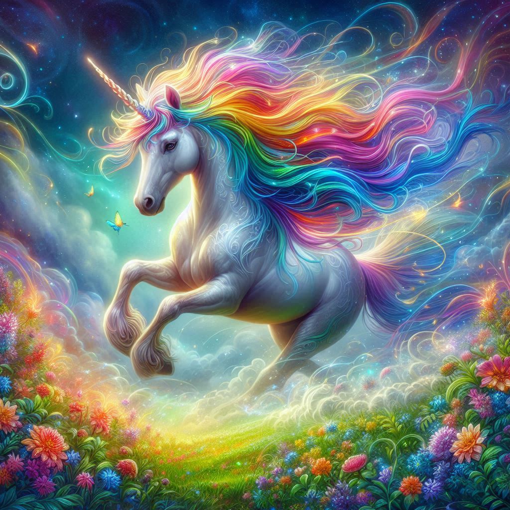 The unicorn walked across the meadow, wrapped in the morning wind.