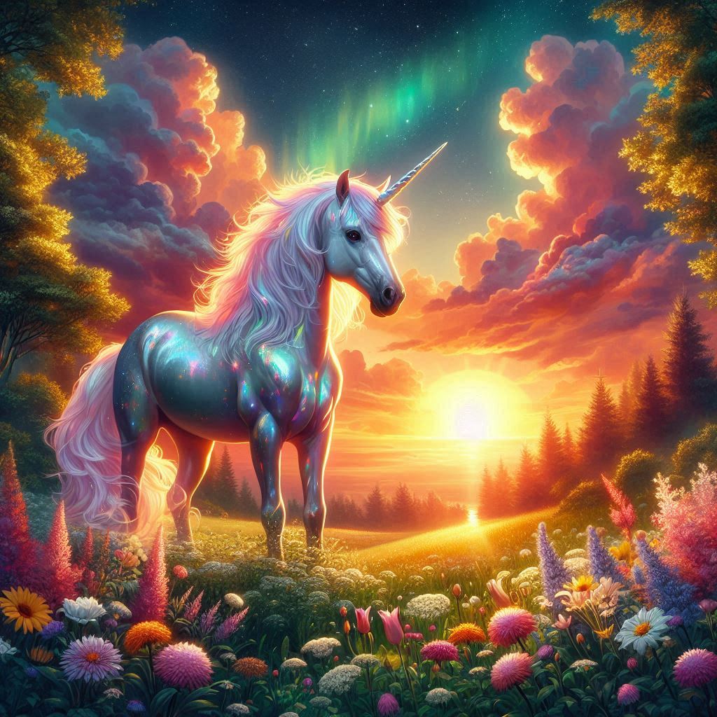 ユニコーンの体がその色を映して、やわらかく輝く。