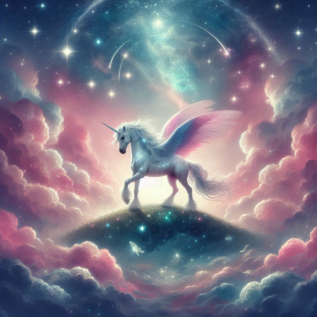 ある深い夜、ユニコーンは静かな草原に立ち、空を見上げていた。